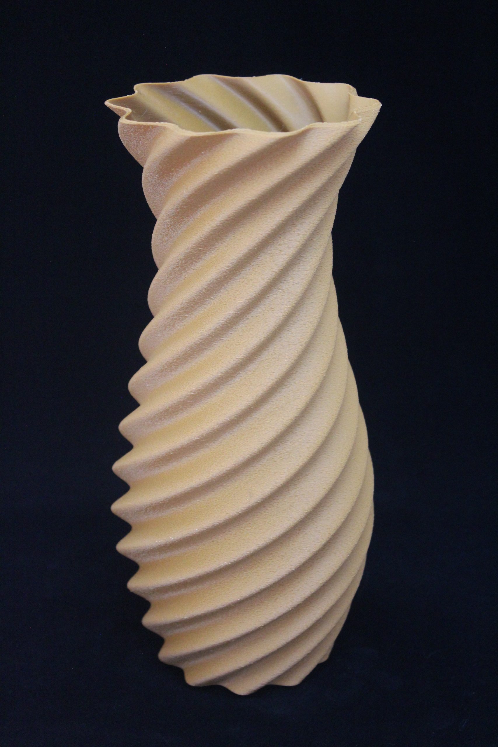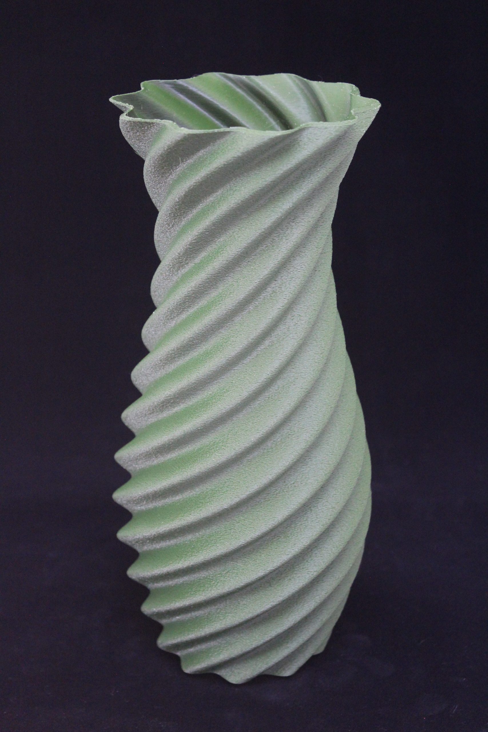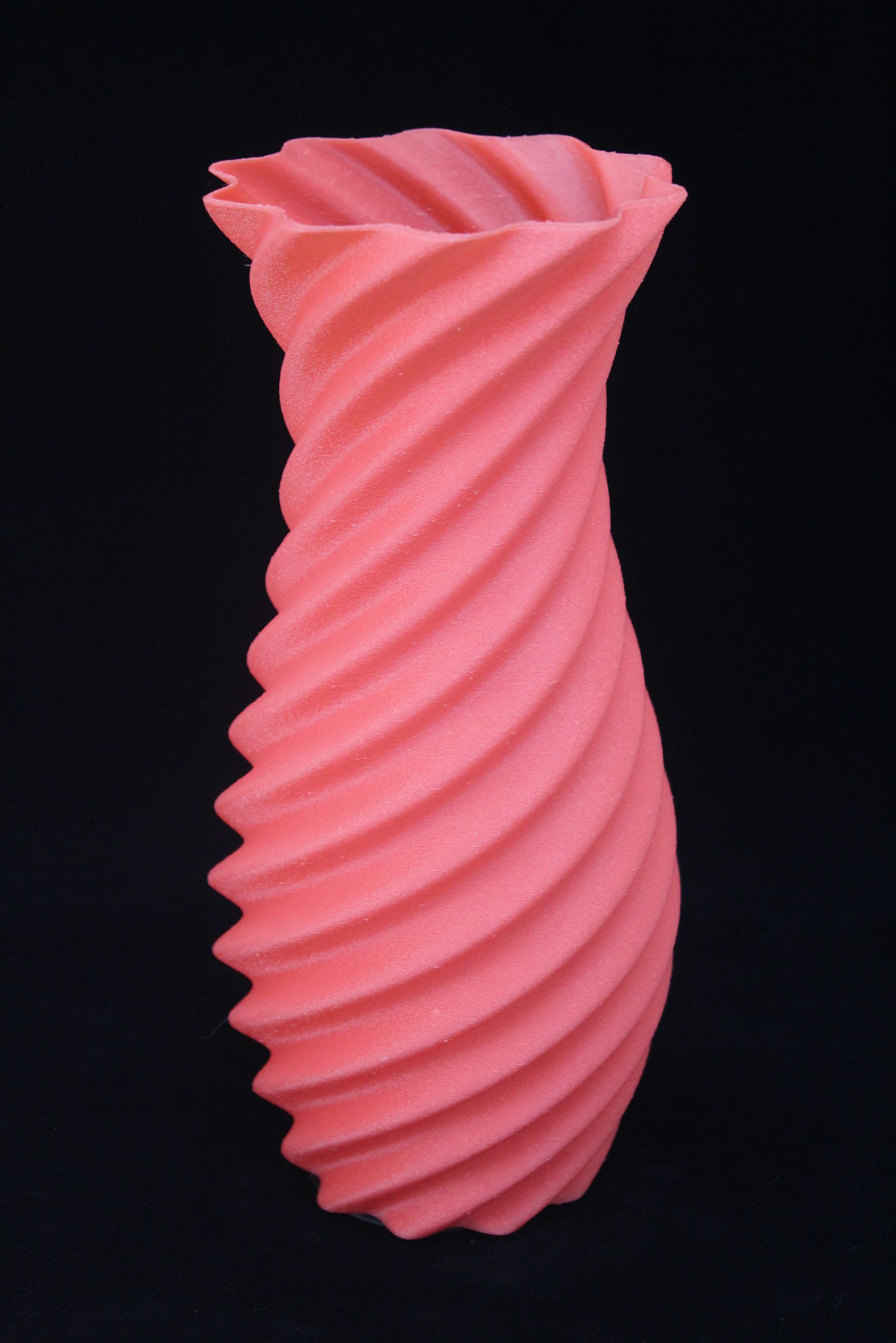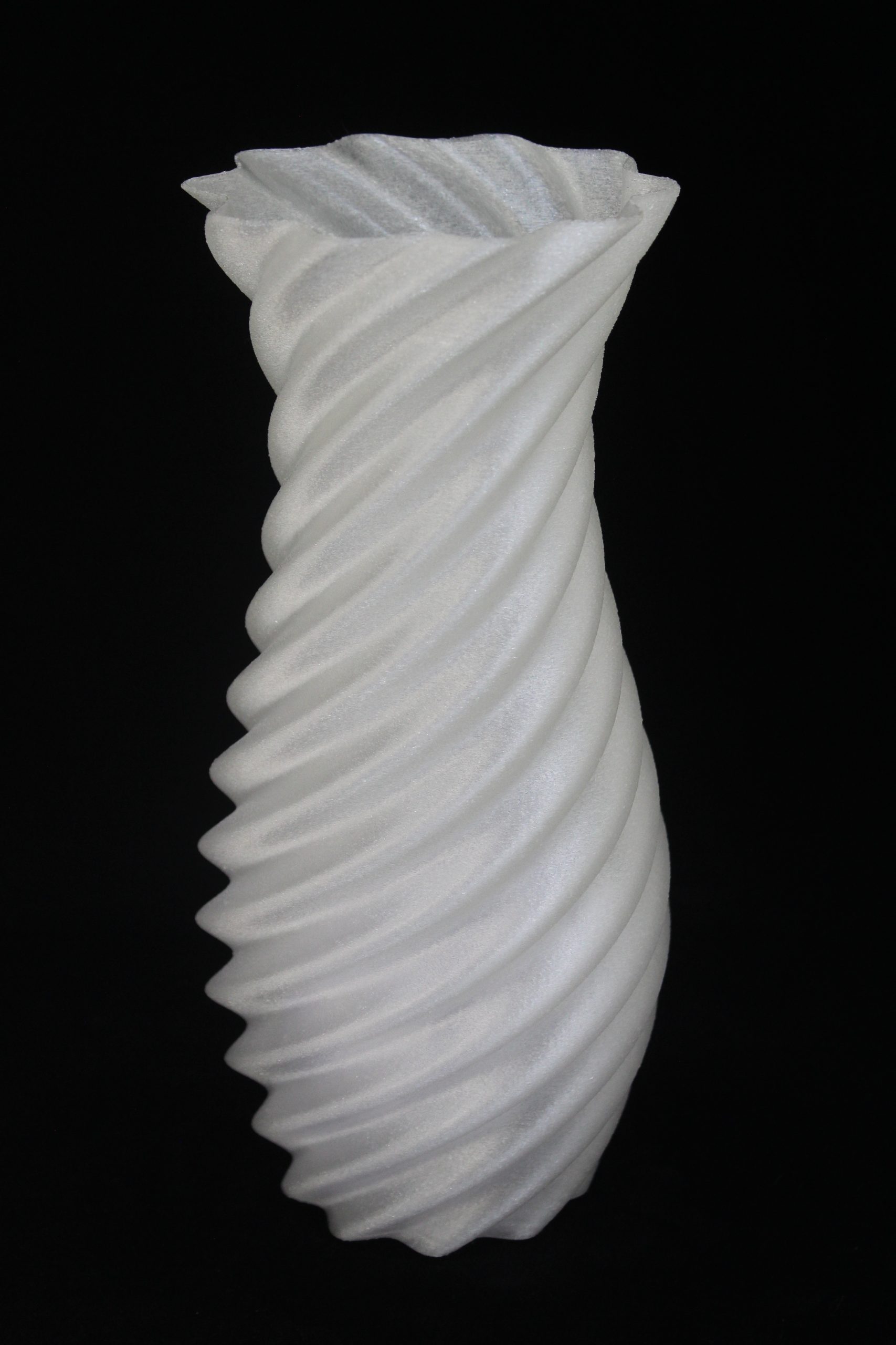 This is a 3D-printed vase with a modern, spiral design.